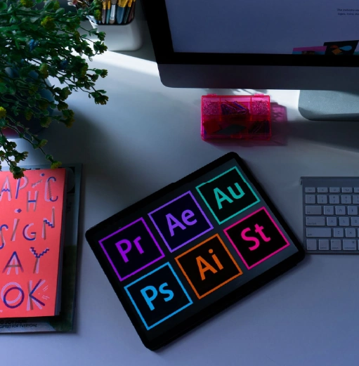 • تصميم الهوية البصرية، مثل الشعار والألوان والخطوط والأشكال.