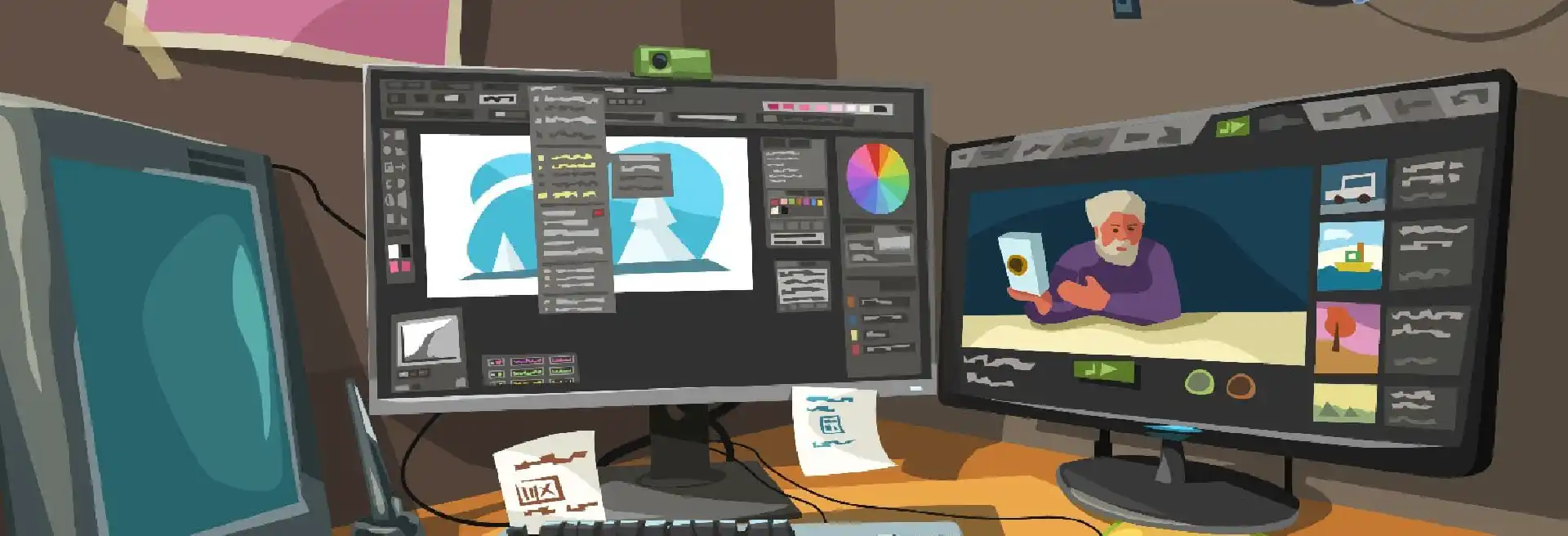 الإعلان والتسويق من خلال إنشاء إعلانات تلفزيونية وإعلانات إلكترونية جذابة تلفت انتباه الجمهور وتقنعه بشراء منتج أو خدمة.