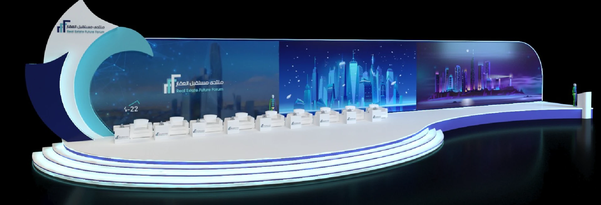 شاشات اللمس التفاعلية، والتي تتيح للمشاركين التفاعل مع المعلومات بطريقة ممتعة وجذابة، حيث يمكن استخدامها لعرض المحتوى، مثل الصور ومقاطع الفيديو، أو لجمع البيانات، مثل استطلاعات الرأي أو التعليقات.